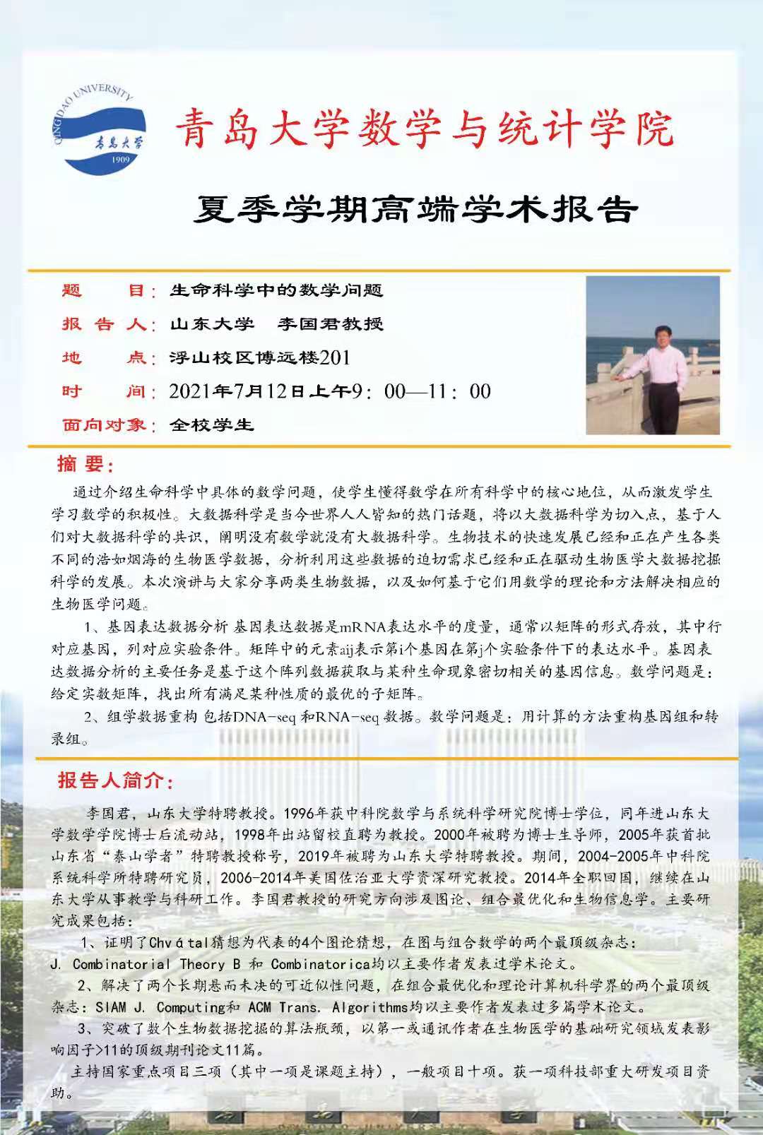 夏季学期第二场高端学术报告在博远楼201教室举行,来自山东大学的泰山学者李国君教授为h动漫