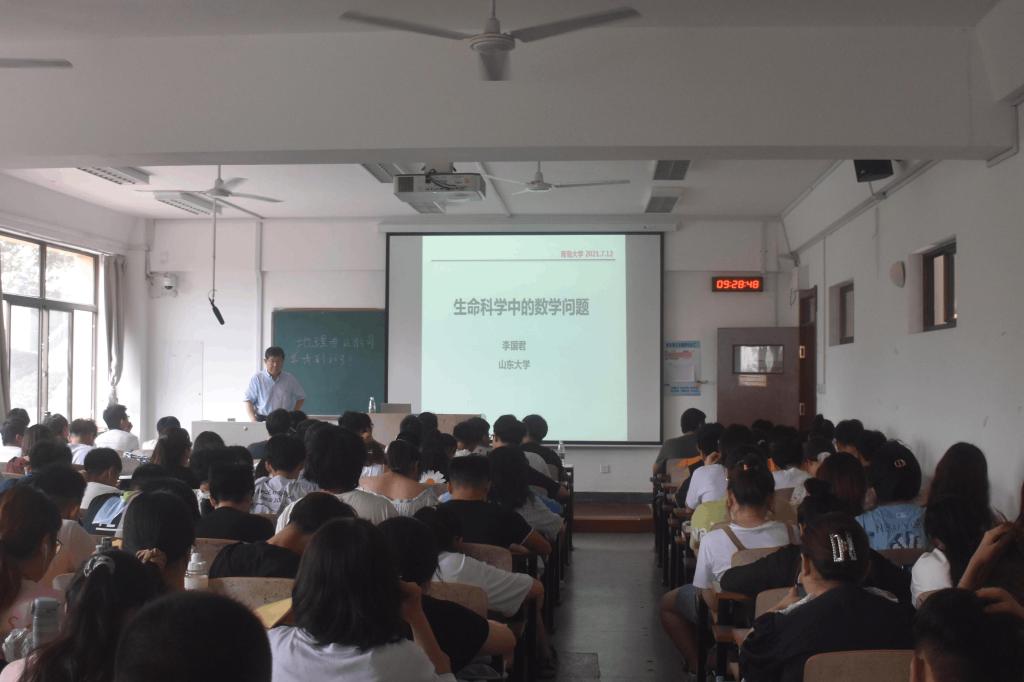 师生作了题为“生命科学中的数学问题”的学术报告,通过介绍生命科学中具体的数学问题,使学生懂得数学在所有科学中的核心地位,从而激发学生学习数学的积极性。