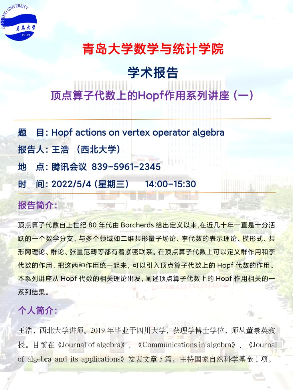顶点算子代数上的Hopf作用(一)