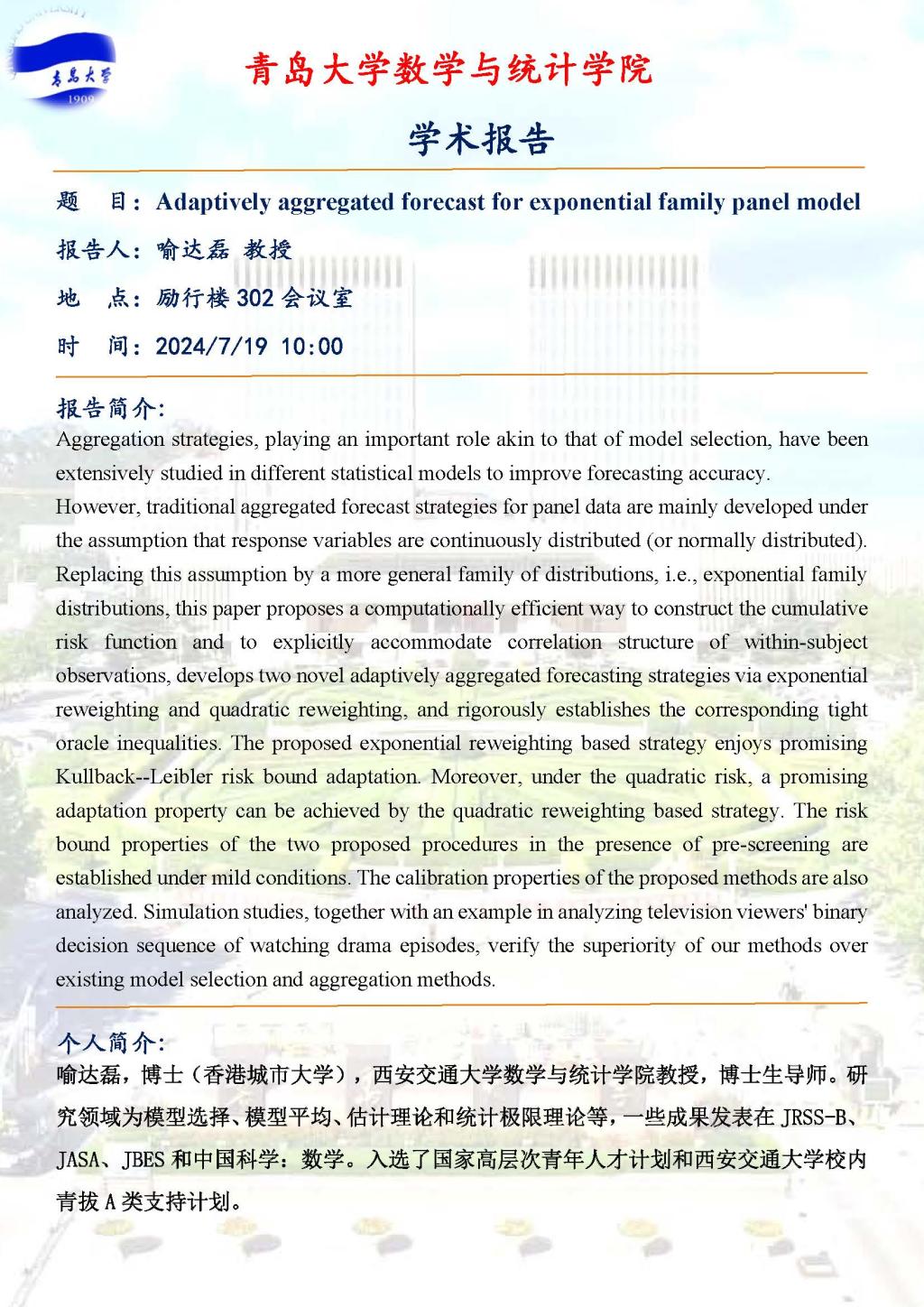 Adaptively aggregated forecast for exponential family panel model