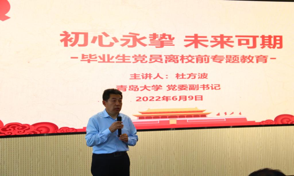 杜方波以毛泽东主席的《为人民服务》文章为切入点,从思想、践行、奉献三个层面对“党员”进行解读。在思想层面,杜方波叮嘱同学们要有理想,理想是指引自己的航标灯;在执行层面,要积极执行党的决定,遵守党的纪律;在奉献层面,要对社会、对别人有所奉献。杜方波寄语毕业生党员三句话,一是‘修一颗善良的心’,二是‘培养过硬的本领’,三是‘用一生的时间读透一本书’,希望毕业生党员修养品德、历练才能、终身学习。