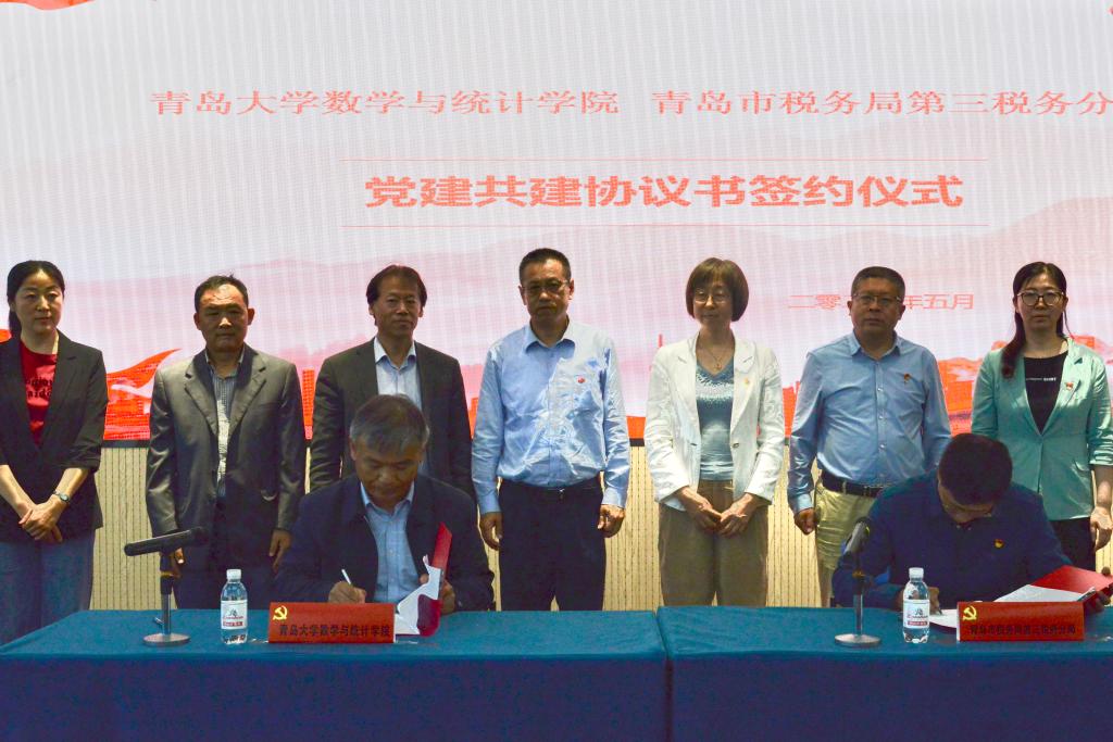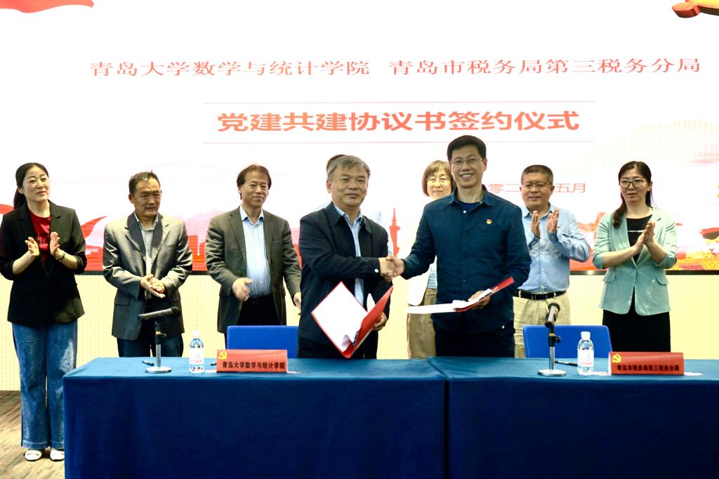 与青岛市税务局第三税务分局党建共建签约仪式在会议中心404会议室举行。学院党委书记姜永杰与青岛市税务局第三税务分局副局长、副书记杨建武共同签署党建共建协议书,双方今后将充分发挥各自优长,在党建创新合作方面取得新进展。院长高红伟、副院长李新民,青岛市税务局第三税务分局一级调研员马汝奎、副局孙钟贞、 张武 、刘霞出席本次签约仪式。签约仪式由学院党委副书记张雪蕾主持。