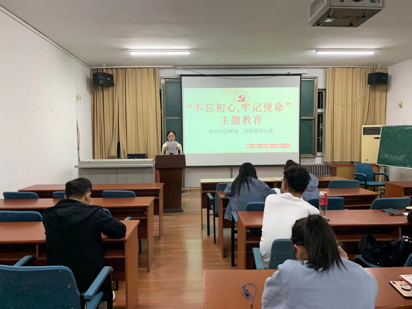 研究生党支部开展“不忘初心,榜样砺我行”主题党日活动。每位与会党员通过现场讲述优秀共产党员先进事迹的形式,让大家透过先进事迹感受榜样的力量。