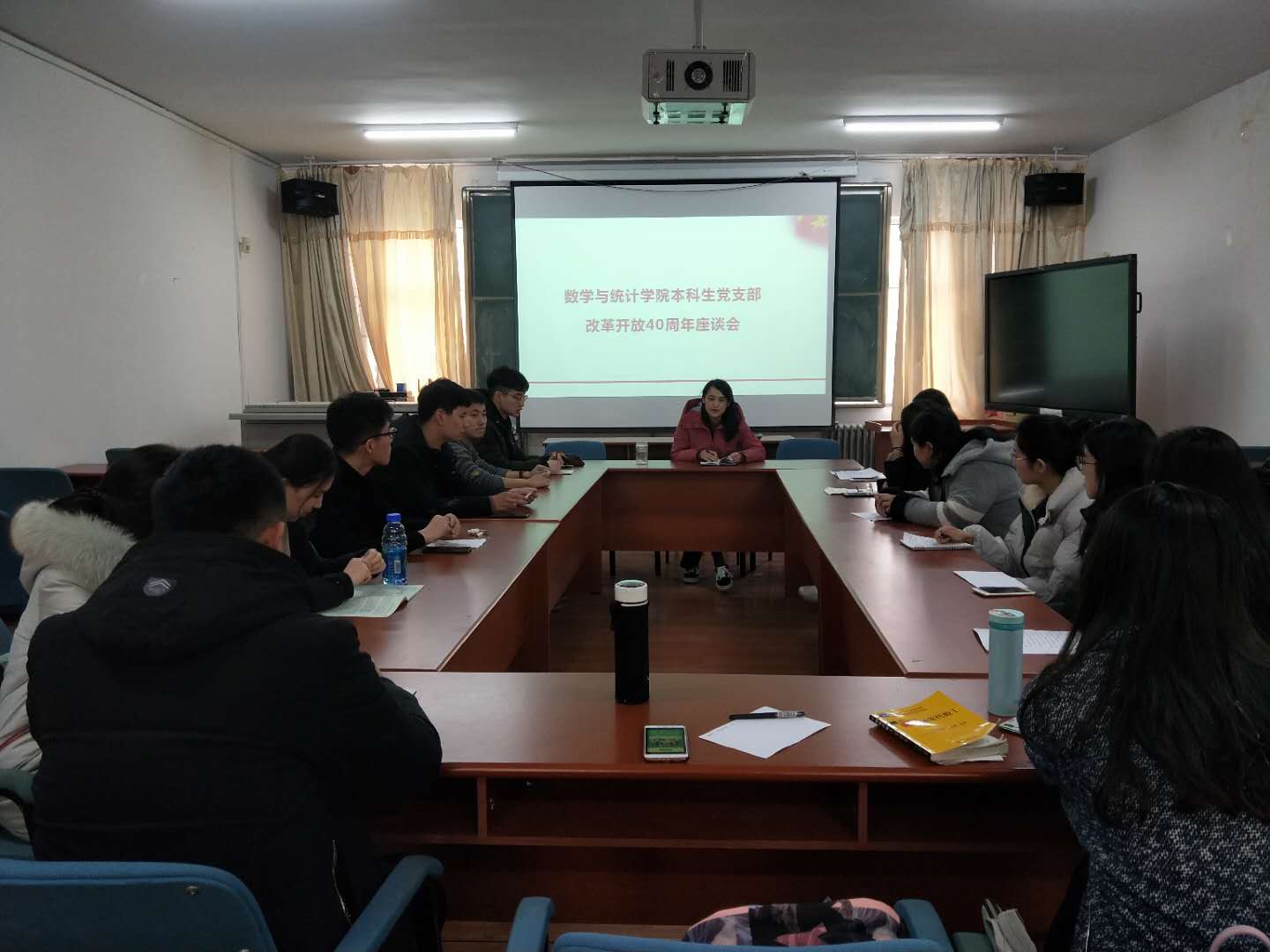 本科生党支部召开庆祝改革开放四十周年座谈会。学生工作办公室主任李玲慧、全体本科生党员参加了会议。