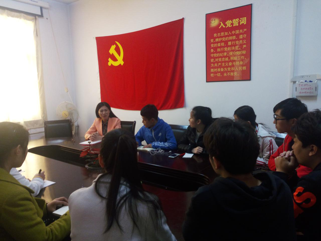 首先,丁洁玉老师与学生党员与入党积极分子们分享了她参加青岛市第十二届党代会的学习心得和感悟并且带领学生研究学习了会议内容与精神,强调在机遇与挑战并存的今天,创新与当代大学生密切相关。之后,丁洁玉老师结合自身经历,为学生党员们进行学业与思想指导,并提出建议:学生党员及入党积极分子在日常工作学习中应严格要求自己,树立正确的人生目标,做好合理的人生规划,积极发挥模范带头作用。最后,学生与老师进行交流,丁洁玉老师耐心回答学生党员在学习工作及思想上的困惑,同学们纷纷表示获益匪浅。