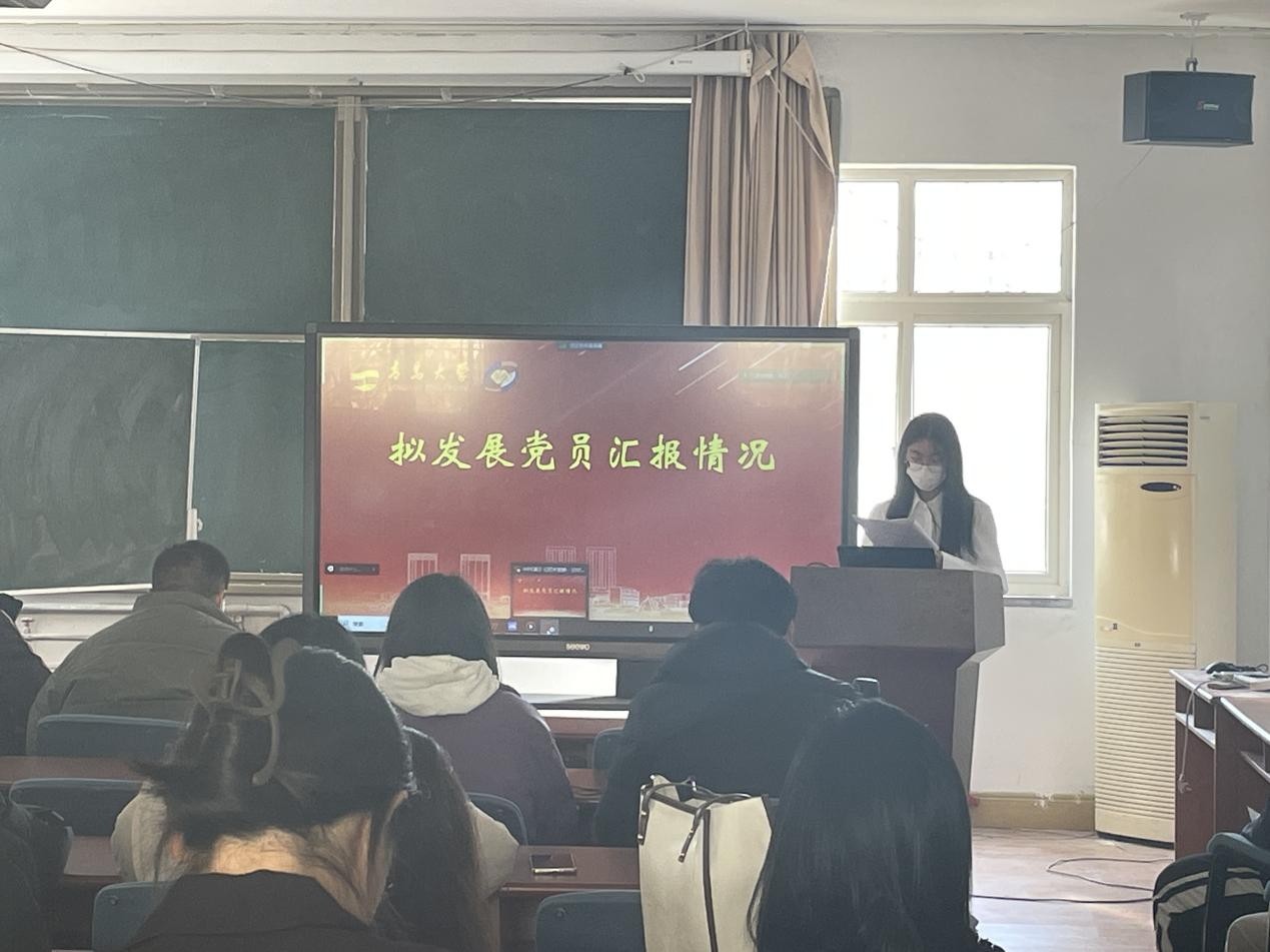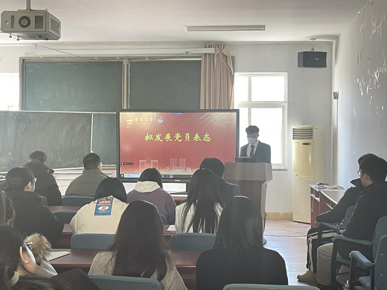 会议由本科生党支部书记朱雨彤同志主持。支部全体党员和拟发展预备党员参加。大会根据《中国共产党章程》和《中国共产党发展党员工作细则》要求,讨论吸收殷博文等22名党员发展对象成为中国共产党预备党员的事宜。
