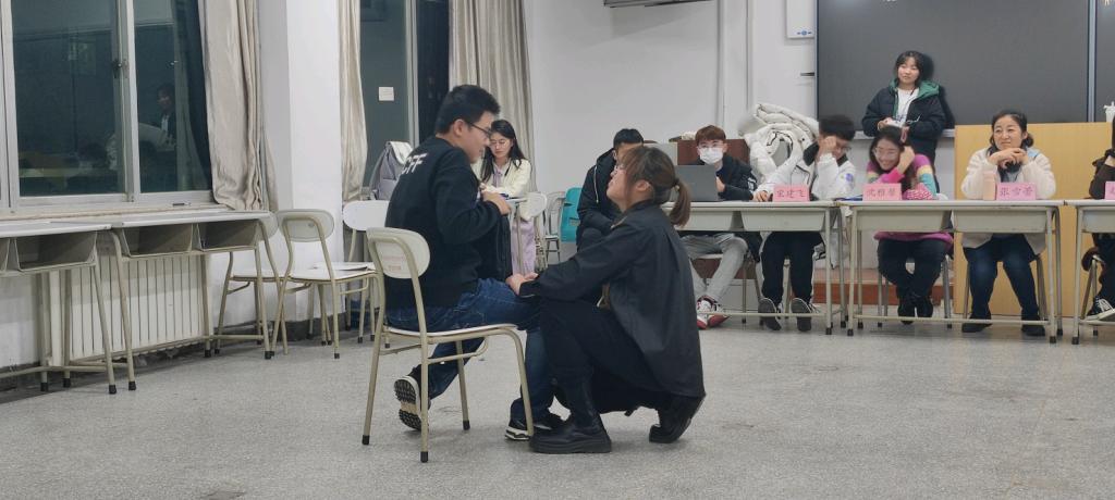 同学们的表演开始。首先进行的是开场舞表演,主席对其稍作批评,但是与初试相较仍有进步。而对于小品《你下载了国家反诈APP了吗》,评委们提出,要加点小动作,整体动作更夸张一点,对个别同学也提出要注意露出正脸。而之后的大合唱加朗诵评委十分喜欢,并赞扬其是十分成熟的节目,同时指出了其中例如对队形与眼神交流的更高要求。而对之后的话剧《手写的大学》,评委毫无保留的提出说话有点不清楚以及声音偏小偏快的问题,并提出了更高的要求。