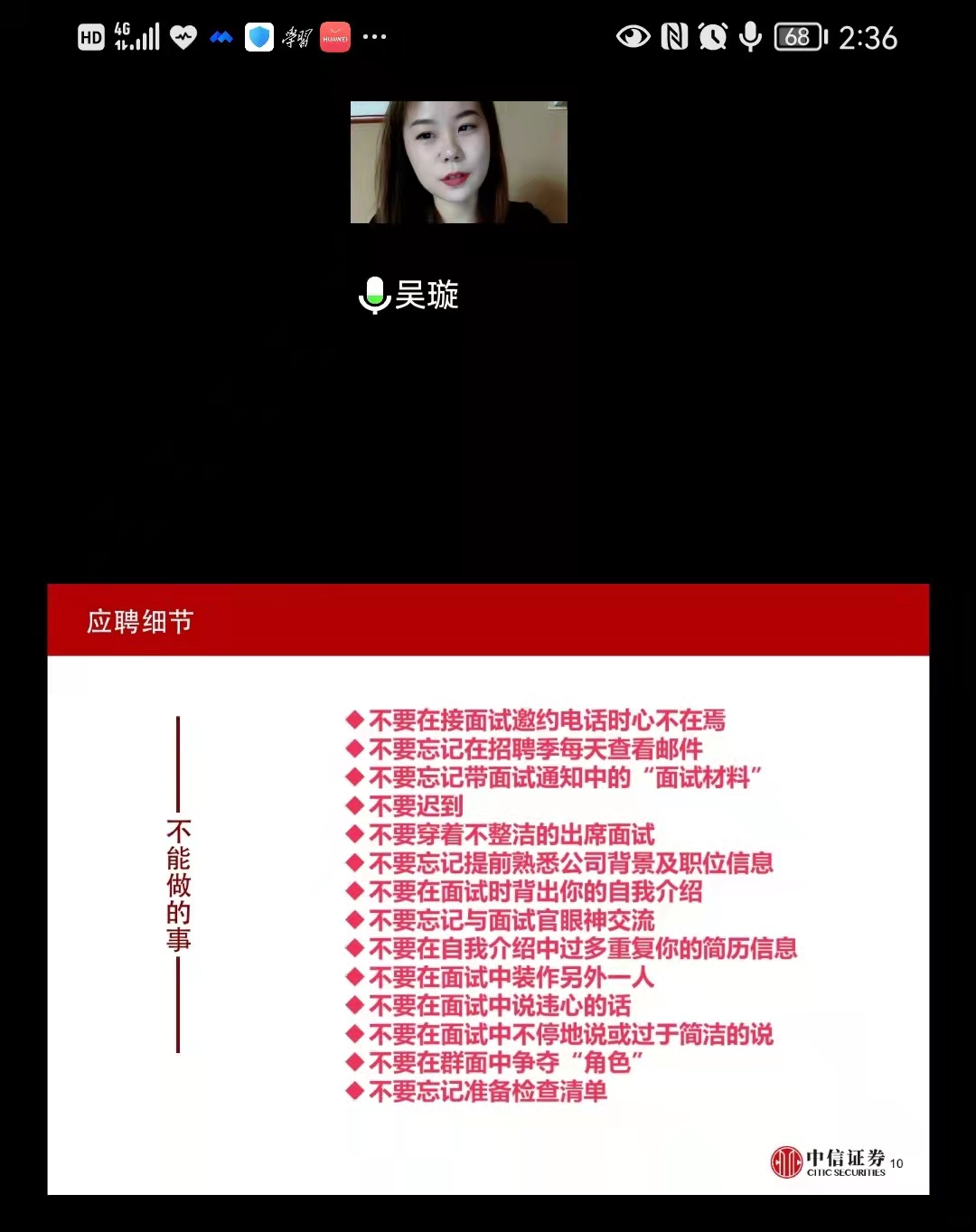 第四部分主题是“走进”中信证券。吴璇介绍了金融行业发展前景、中信证券的整体框架、淄博市柳泉路营业部概况,以及数学专业在证券行业的优势。