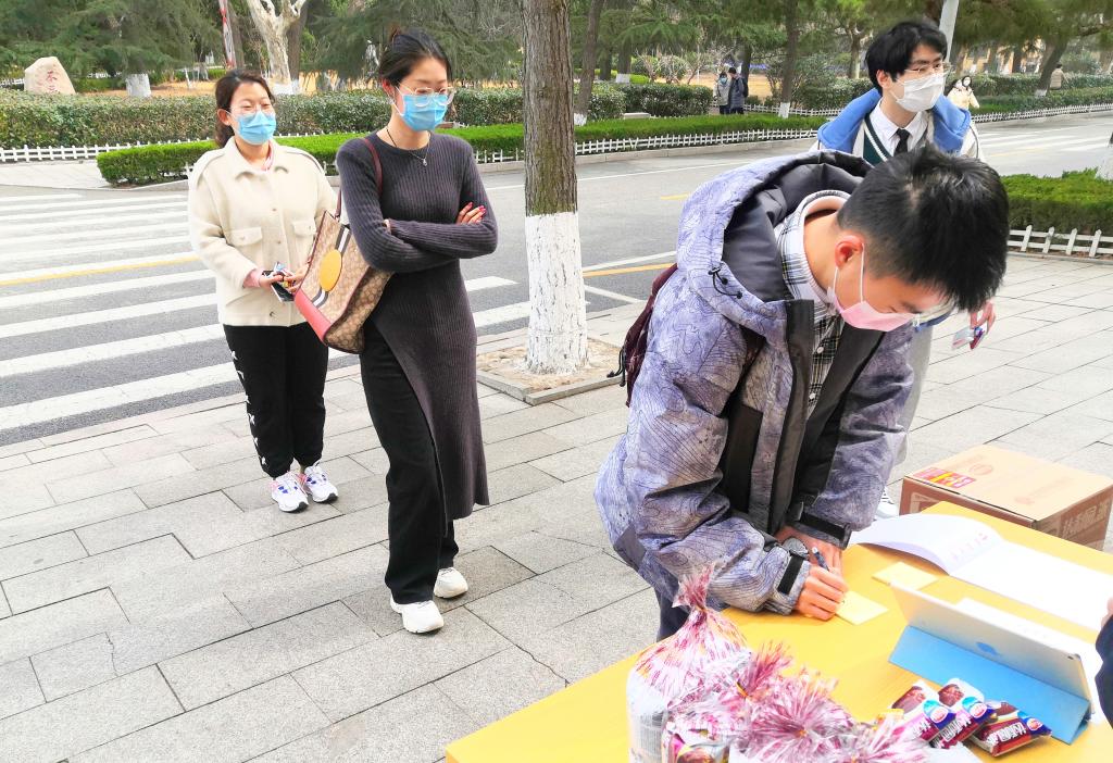 第二届数学文化节开幕,学院研究生会于浮山校区仁园餐厅门口举办3.14“π ”送活动。“3.14”是距离圆周率π最接近的数字,因此将每年3月14日定为国际数学日。本次活动旨在增强数学认同,宣传数学文化,传播数学之美。