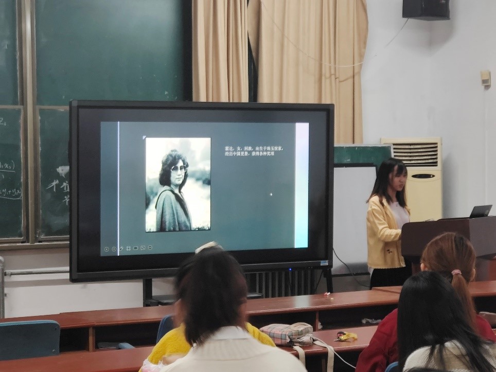 统计三班曹雪梅同学分享的是霍达的著作《穆斯林的葬礼》,它以回族手工匠人梁亦清的玉器作坊奇珍斋升沉起伏为主线,在历史的背景下描写梁家三代人不同的命运变迁,表现了主人公为追求理想和事业,为完善自身素质所发出的蓬勃不息的命运意识。