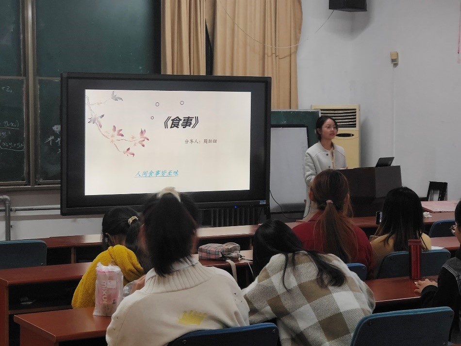 统计三班周甜甜同学分享的是汪曾祺老先生的《食事》,吃是一种享受,是一种态度,也是一种文化。在这本书中介绍了很多美食,既能满足读者的口腹之欲,更能让读者感受到作者对人间至性至情的热爱。