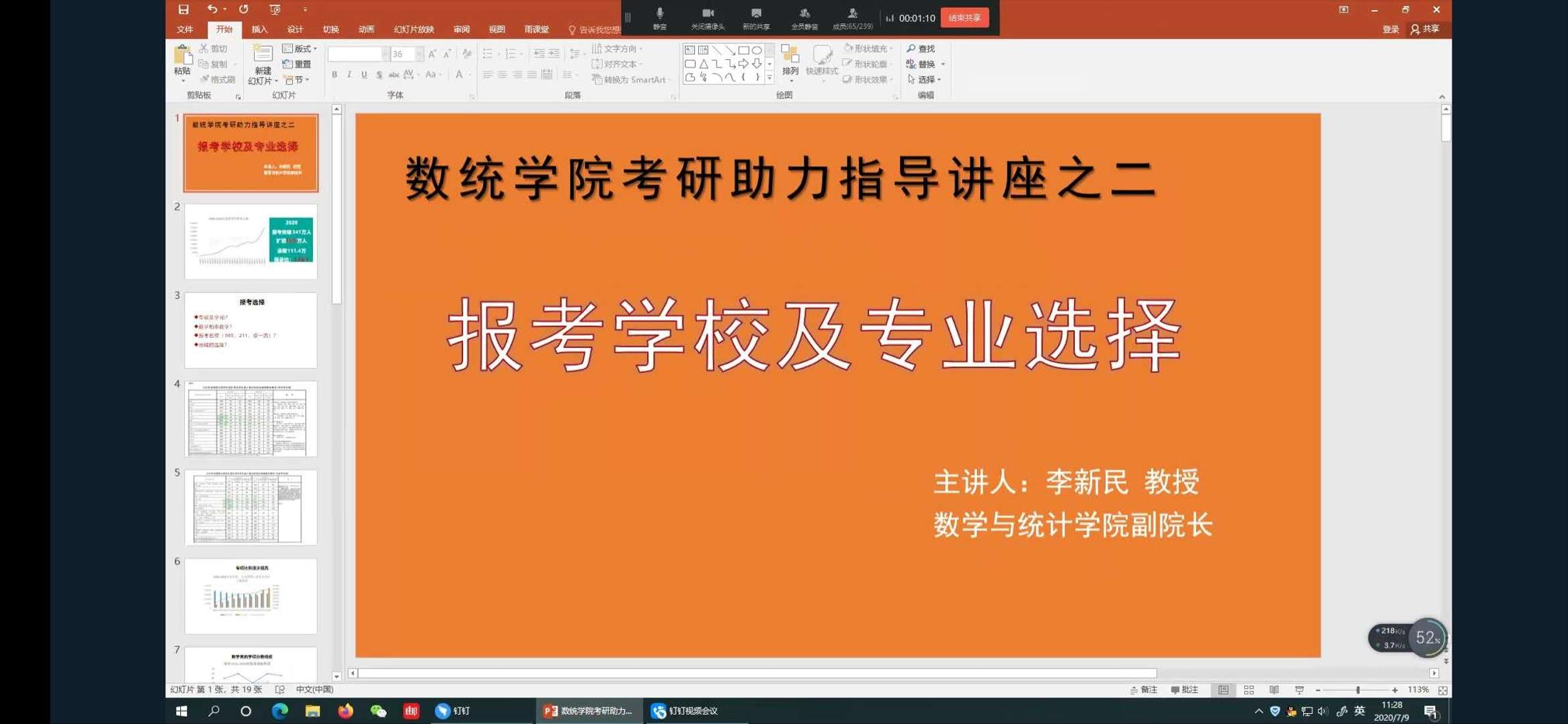 为帮助同学们备战2020年考研,7月9日,h动漫 通过钉钉线上直播的方式召开主题为“考研学校及专业选择”考研助力系列讲座。讲座由学院副院长李新民主讲,2017级考研同学参加。