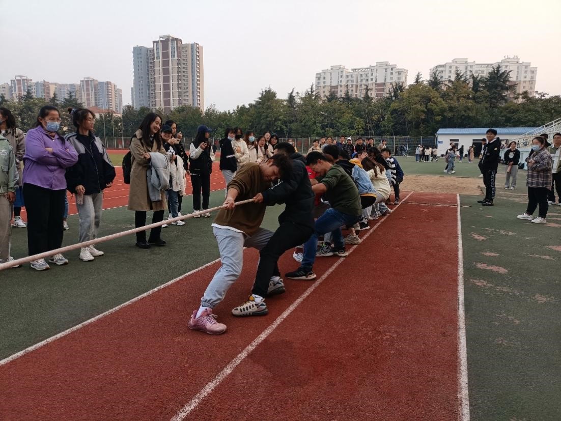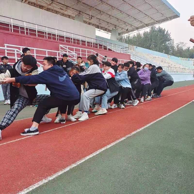 在浮山校区西院体育场举办了2020级分专业后班级拔河比赛。2020级7个班级参与比赛。本次比赛由应用统计学一班组织。辅导员李玲慧和各班班主任观看了比赛。