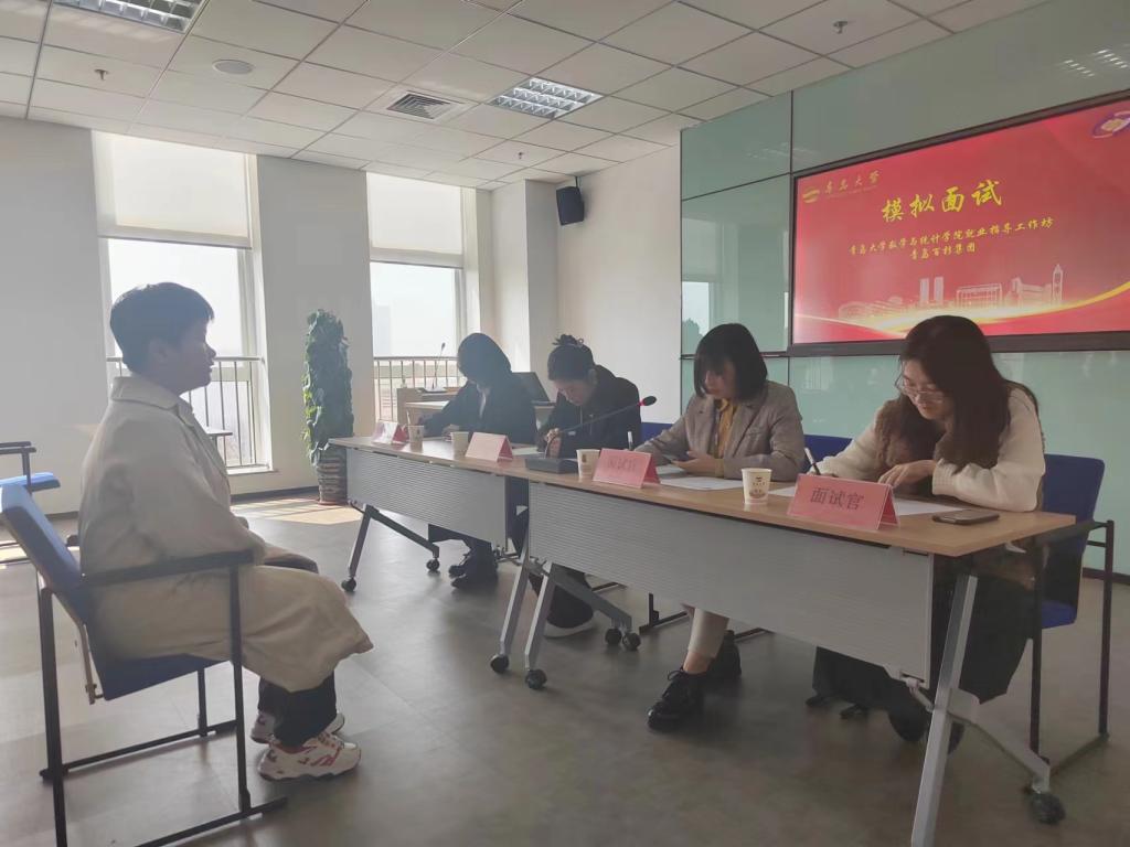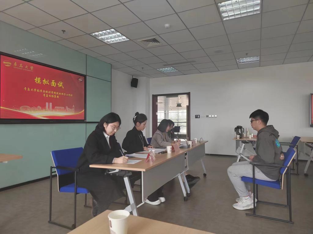 青岛百杉集团副总经理侯慧强从疫情后就业现状、专业与行业的匹配程度、简历指导、面试注意事项等方面给同学们进行了详细讲解。同学们现场优化简历,百杉集团职业规划师进行现场指导。随后,现场对简历进行筛选,选出参加模拟面试的8位同学。