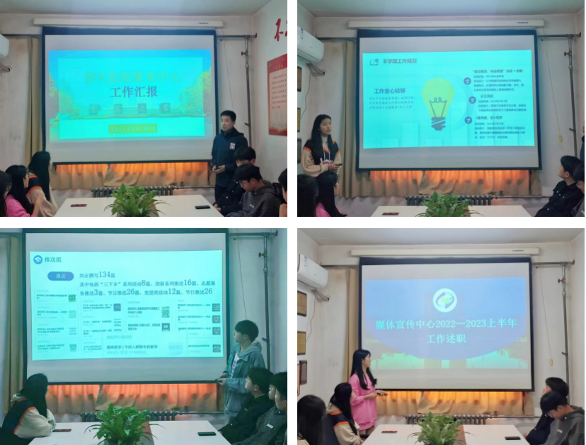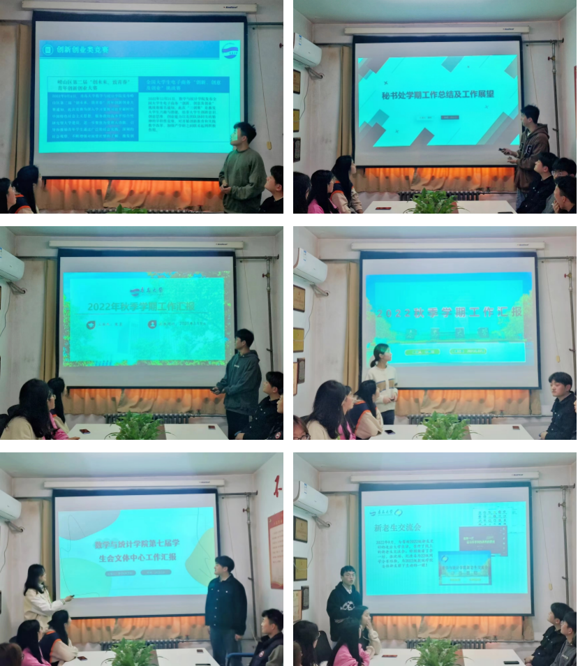 会议中,学生会各部长依次介绍各部门秋季学期工作及未来工作展望。我院学生会在2022年秋季学期开展多项工作,在网络媒体宣传的传播度、志愿服务系列活动的成熟度、文体竞赛活动的多样度、学生会各部门间的协调度等方面均有所提高。对于本学期的工作展望,各部门计划围绕学院特点、学科特色开展创新特色活动,培养合作默契,协同为同学们打造和谐多彩的校园生活。