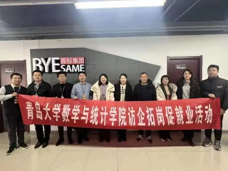 党委书记刘琪、党委副书记魏小平、副院长李新民、学工办主任李玲慧、团委书记朱雨彤、辅导员杨艺、赵丽萍一行7人赴青岛百杉软件科技有限公司(以下简称百杉科技)进行访企拓岗促就业活动。
