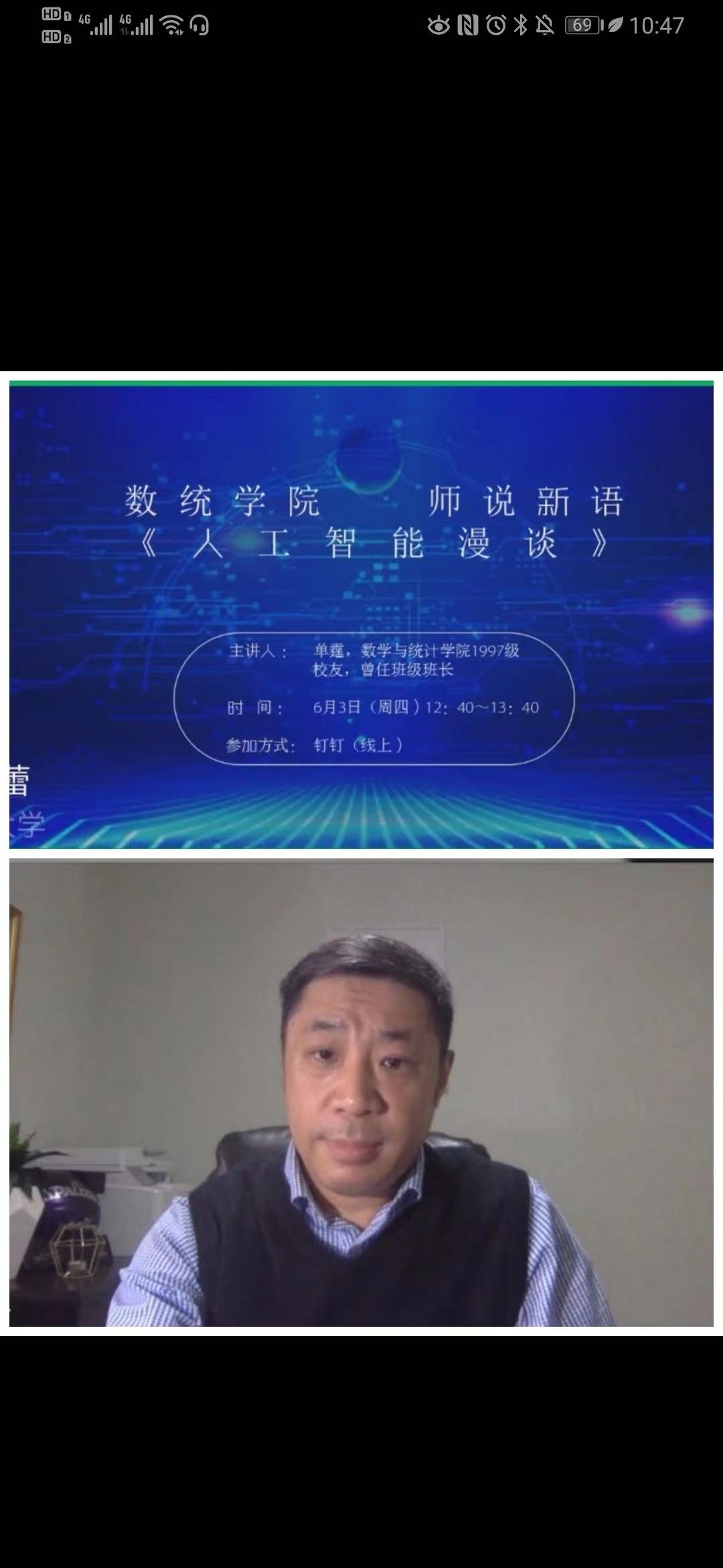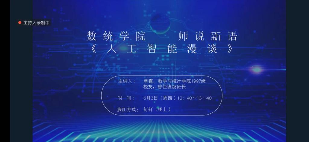 通过钉钉会议方式举办“师说新语”系列之“人工智能漫谈”讲座。学院1997级优秀校友单霆主讲,h动漫