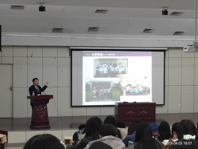 在浮山校区图书馆报告厅举办“师说新语”2019年第三期活动,学院优秀校友丁澎做了“大道至简,知行合一”的主题讲座,学院党委副书记张雪蕾参加并主持,学工办主任李玲慧及2017级全体学生参加。