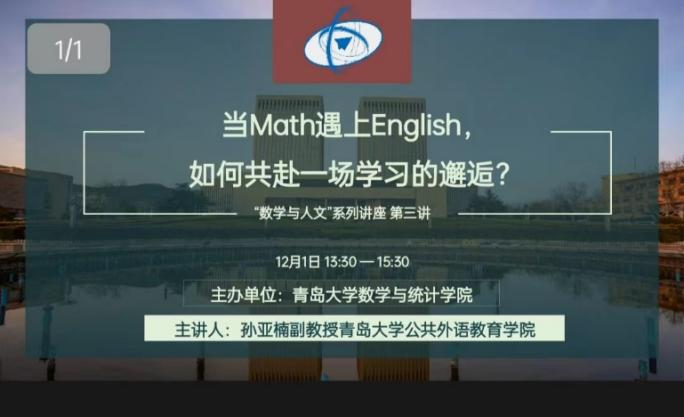 “数学与人文”系列讲座第三讲——“当Math碰上English,如何共赴一场学习的邂逅”线上开讲。本次讲座由h动漫