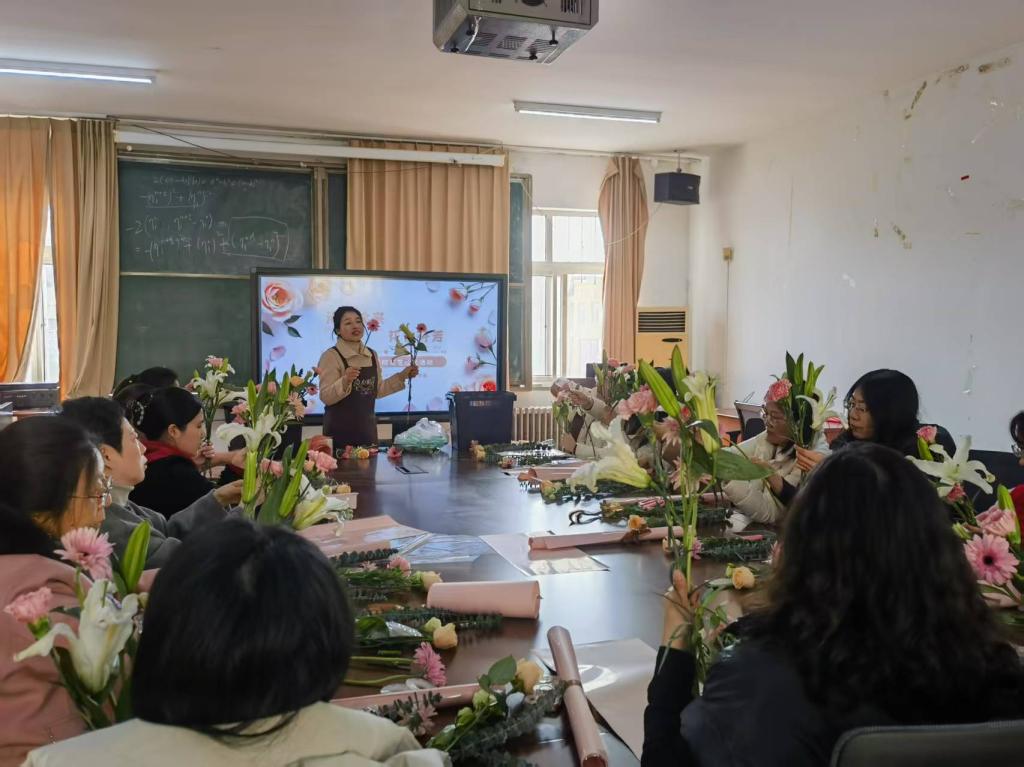 分工会在励行楼302会议室举行“清风徐来 花自芬芳”花艺沙龙活动。活动由学院党委书记刘琪主持。
