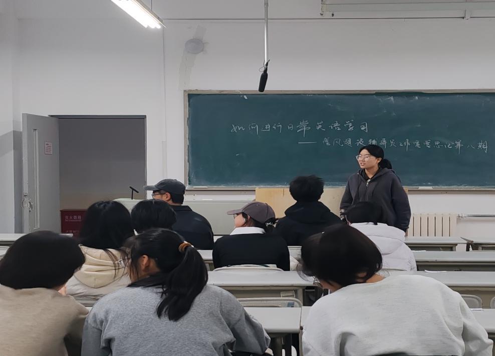 12月1日晚于金家岭校区西院2号楼304开展“学风建设辅导员工作室活动‘学思汇’第八期——如何进行日常英语学习”主题活动,该活动由学术中心志愿者刘欣宇主持。